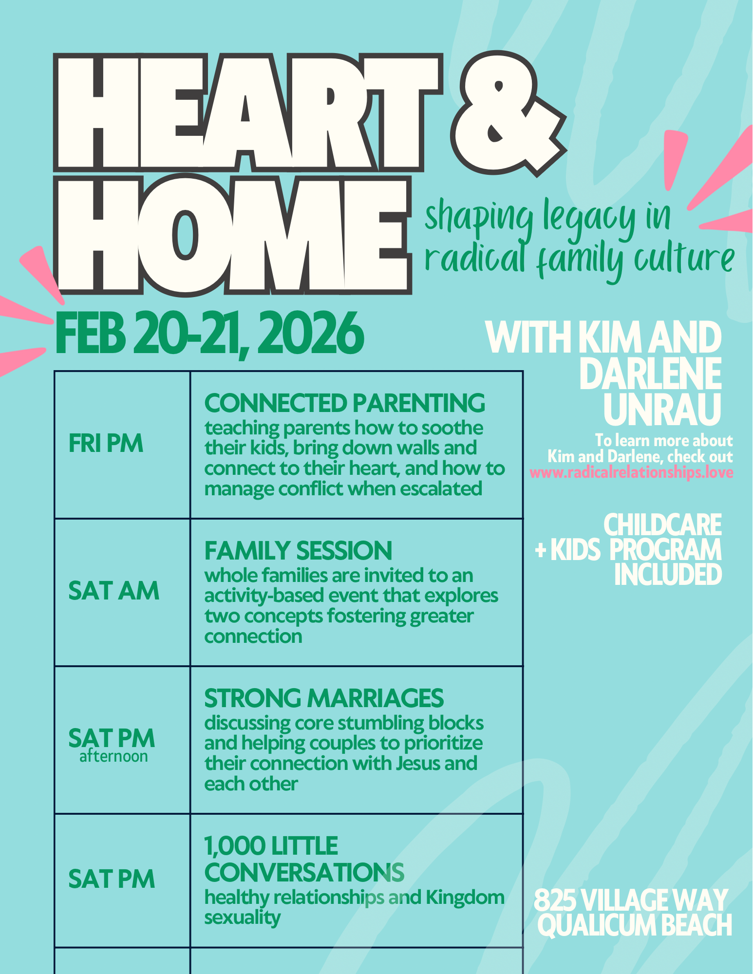 This is the aim: strengthen the family unit and shape legacy in radical family culture! This weekend of workshop-style sessions is going to be a huge catalyst of growth, connection, and equipping for you and your family!