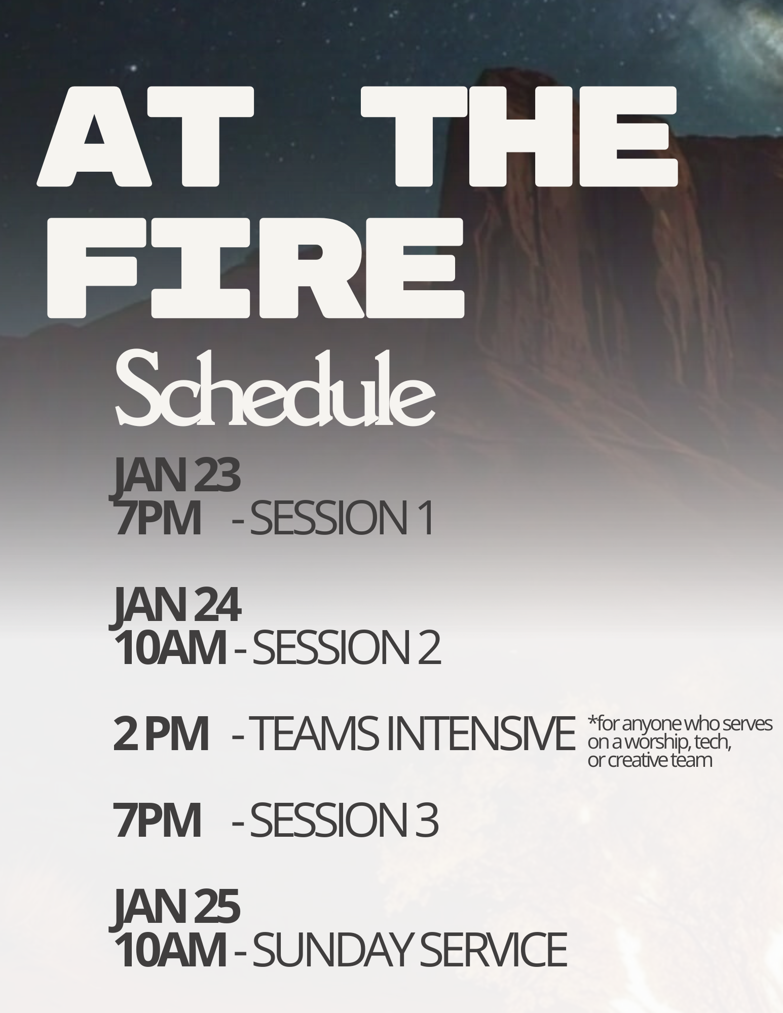 Get ready for an amazing weekend where we, as worshippers of Jesus, gather to encounter fresh fire!